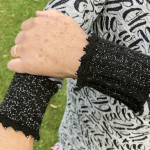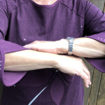 Es ist wohl oder übel eine Tatsache, dass sich das Shirtwetter langsam aber sicher rar macht. Nähtechnisch bedeutet dies, dass ich nun nicht mehr nur am Shirts nähen bin 😉 Ich bin zum Thema „Kleid in Variationen“ übergegangen 😀 Das Modell für mich muss ich allerdings erst noch fertigstellen. (Ich bin bereits bei Version 3 angelangt und hoffe, dass ich jetzt dann schnitttechnisch zufrieden bin damit!) Aber ich habe auch zwei Kleider genäht und verschenkt. Dank der Anprobe von einem fremden Nähbeispiel erwies es sich zufällig, dass der Schnitt Ronja von Pattydoo gefällt und auch passt. Das war meine perfekte Ausgangslage! Wir waren uns schnell einig, dass die stark taillierte Schnittführung vom Schnitt Ronja nicht optimal zur Linienführung des Körpers passte. Deswegen habe ich also die Taille etwas gegen oben verlegt und die Kurven ein wenig abgeflacht. Sicherheitshalber habe ich vom korrigierten Schnitt aus einem verschmähten aber qualitativ hochwertigen Jersey noch ein Probestück genäht. Es passte zu unserer Freude hervorragend! Erstaunlich schnell waren zwei passende Stoffe gefunden: Der rötlich-auberginefarbene Jersey mit Zickzacklinien von Swafing und ein Reststück vom Jaquard „Oh yes“ von Hamburger Liebe. Jetzt war der Moment gekommen für eine Idee, welche ich schon eine Weile mit mir rumtrage: Cuff me’s selfmade! Eigentlich finde ich ja die Cuff me’s von Hamburger Liebe total cool und so eine gelungene Idee. Aber ich muss zugeben – in mir schlummert ein Perfektionist. Der Gedanke, dass man die seitliche Bündchennaht spüren und allenfalls sogar etwas hervorblitzen sehen könnte, störte mich einfach immer ein wenig. Nun hat mir eine liebe Fee Cuff me’s nach meinen Wünschen gestrickt und ich finde sie einfach perfekt! Sie weisen keine störende seitliche Naht auf und mit dem mitgestrickten Silberfaden und der gehäkelten Spitze mit Perlen besitzen sie auch das gewisse Etwas.