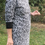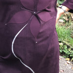 Beim zweiten Kleid habe ich das schlichte Zickzacklinien Muster des Stoffes ergänzt mit der Applikation von Blütenblättern, dem Aufnähen von Perlen und dem Aufbügeln des Blütenstängels aus Transferfolie. Diesmal habe ich die Elemente von Hand ausgeschnitten. Aber eine Digitalisierung der Blüte würde dann auch das Schneiden mit dem Plotter ermöglichen… Bei diesem Kleid sind die Manschetten ein besonderer Hingucker. Für alle, welche gerne auch sowas nähen möchten, biete ich im November einen Jerseykurs an. Alle weiteren Details findet man direkt in der Kursausschreibung!